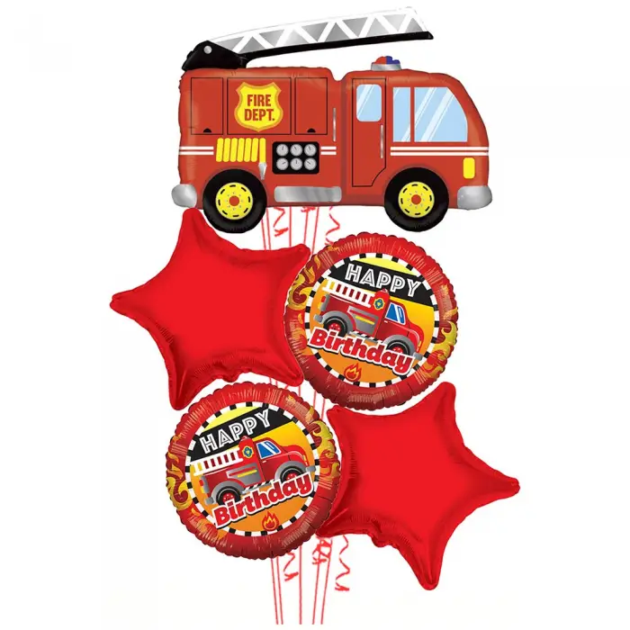 Buchet 5 Baloane cu Heliu Tematică Pompieri - Ideal pentru Petreceri și Aniversări