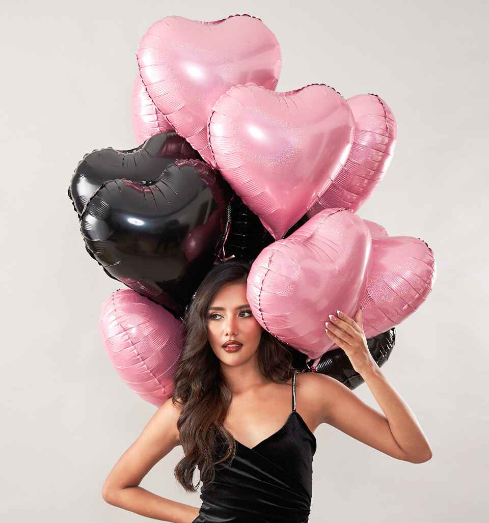Set Baloane cu Heliu din Inimi Negre și Roz