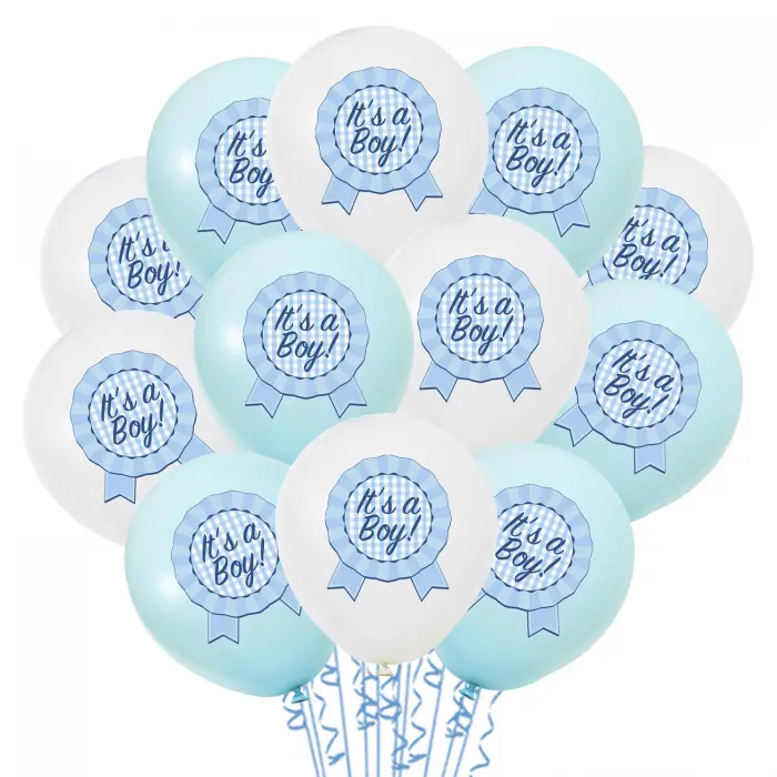Baloane latex de 30cm cu print in nuante de albastru "It's a Boy"